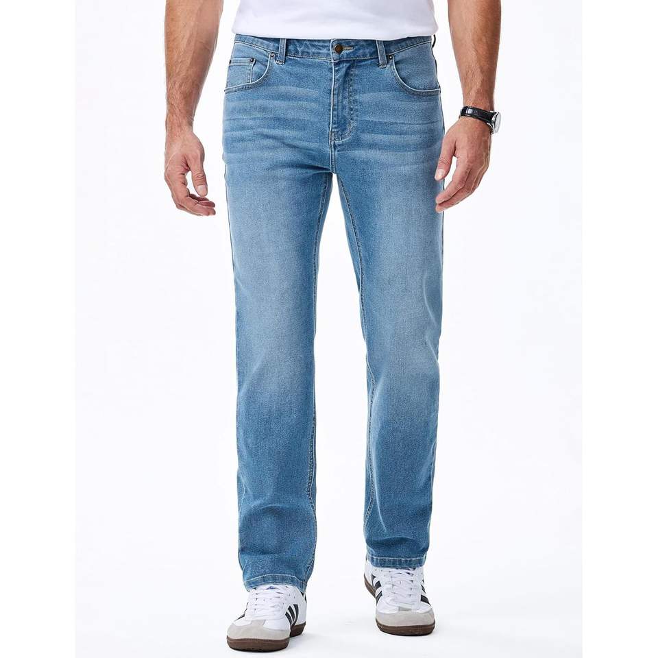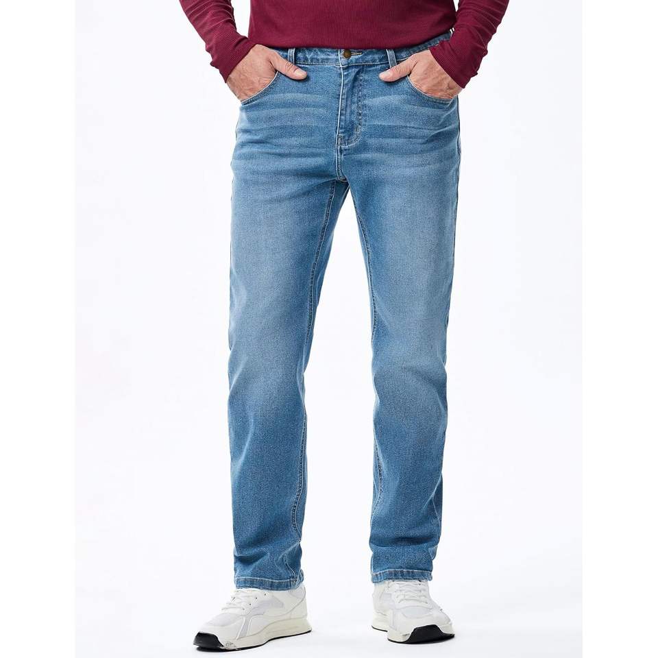 กางเกงยีนส์ลำลองแบบวินเทจของผู้ชายกางเกงยีนส์ทรงหลวมทรงตรงเข้ารูปปกติฤดูหนาวสีถักทอซักวินเทจตามสั่ง