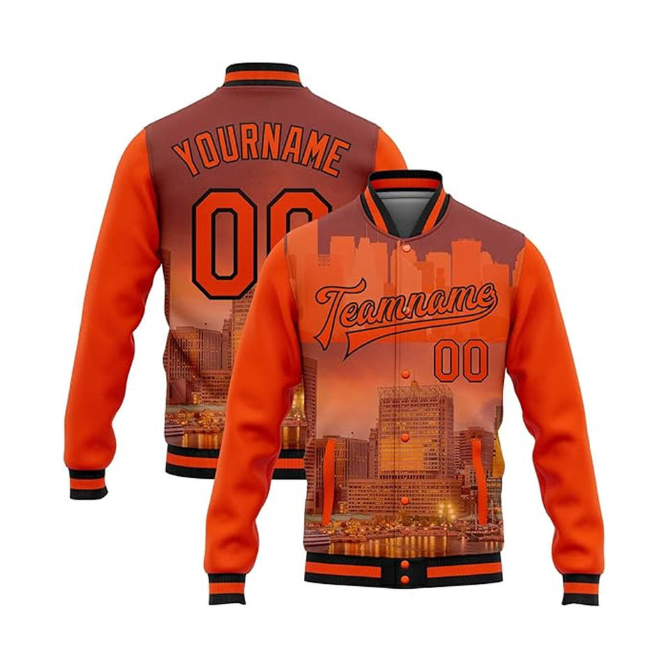 เสื้อแจ็กเก็ตเบสบอลทีมเบสบอลเมืองวินเทจของผู้ชายบุด้วยผ้าซับในแบบส่วนตัวตัวอักษรเย็บชื่อโลโก้ที่ตั้งสำหรับฤดูหนาว