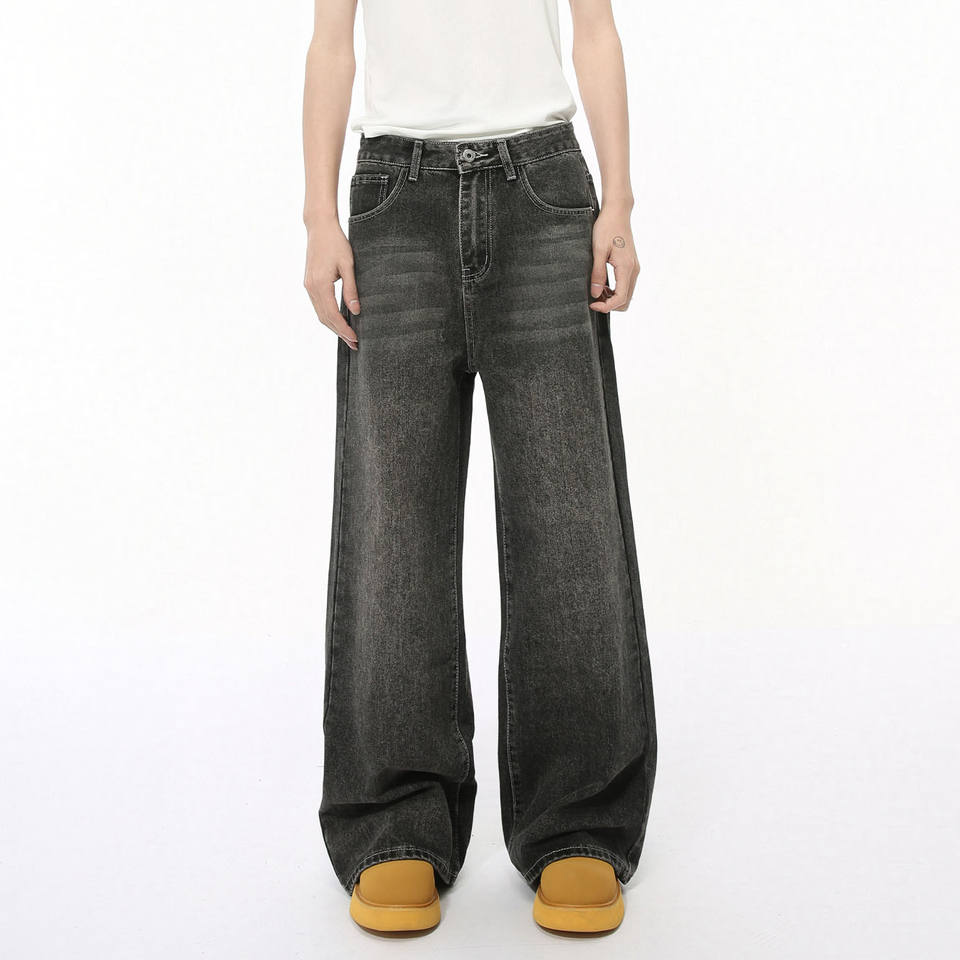 กางเกงยีนส์วินเทจทรงหลวมสไตล์สตรีทแวร์สำหรับผู้ชาย ลุค Dirty Wash ขากว้าง ทรงโอเวอร์ไซส์ ขาดๆ แบบเรโทร สไตล์ Baggy ทรงหลวมใส่สบาย แบบคาร์โก้