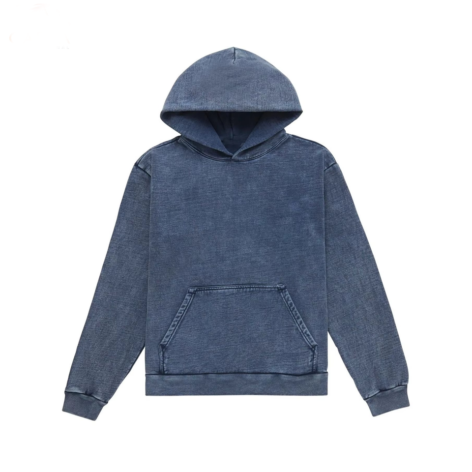 เสื้อฮู้ดซักหินสไตล์วินเทจของผู้ชายผ้าฝ้าย100% โอเวอร์ไซส์สีฟ้าซีดจางสีดำเสื้อสวมหัวแบบเก่าสำหรับฤดูหนาว