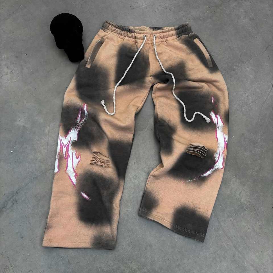 กางเกงวินเทจของผู้ชายกางเกงลำลองขาบานประดับด้วยพลอยเทียมออกแบบได้อย่างมีความสุขผ้าขนแกะสไตล์ด้านหน้าเรียบ
