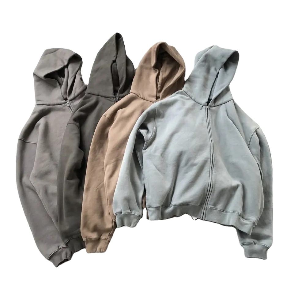 เสื้อฮู้ดผู้ชายวินเทจโอเวอร์ไซส์แต่งซิปโอเวอร์ไซส์ผ้าคอตตอน100% 400GSM ผ้าเฟรนช์เทอร์รี่