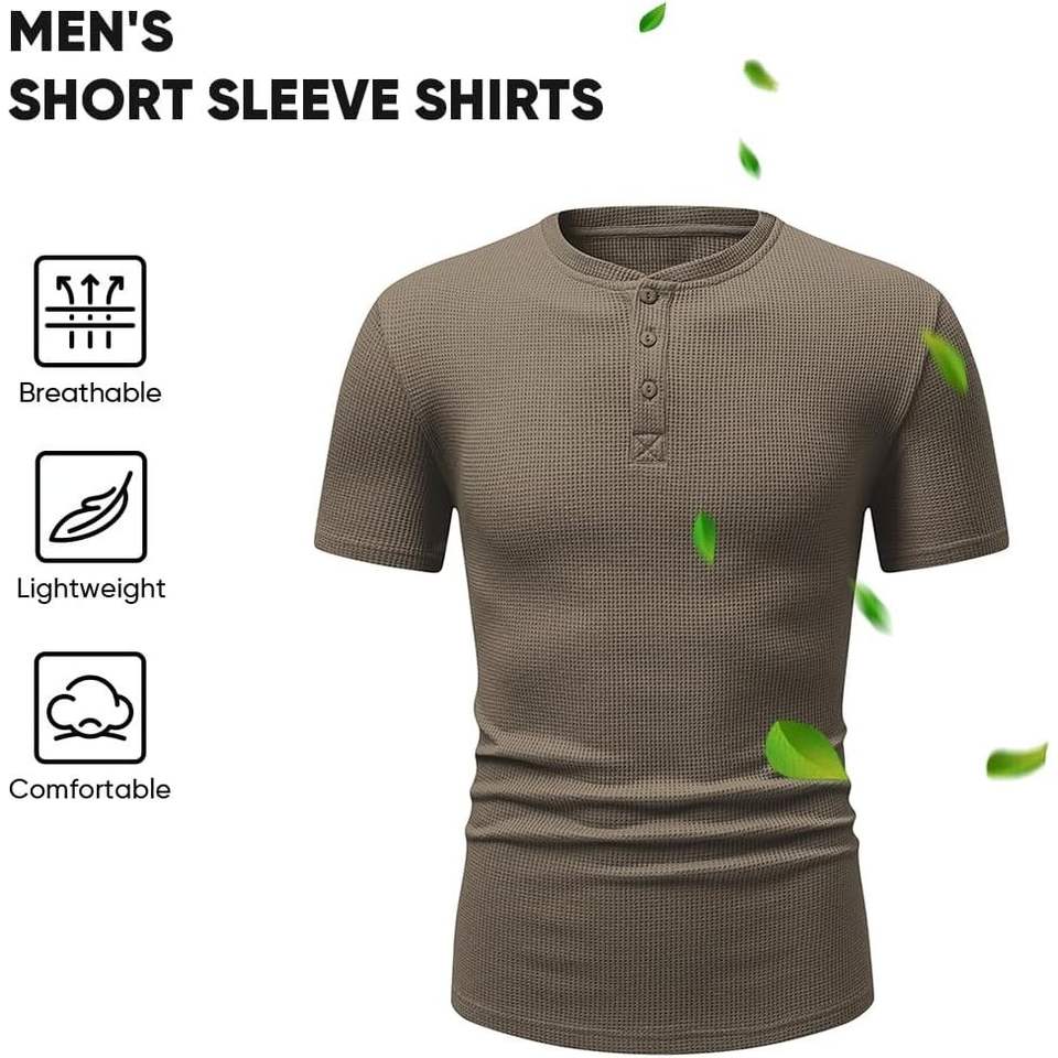 Custom Men's Waffle Cotton Crewneck T-Shirt Henley Shirt with Button for Gym Workout Loose Fit Athletic Tees Fitness Clothing