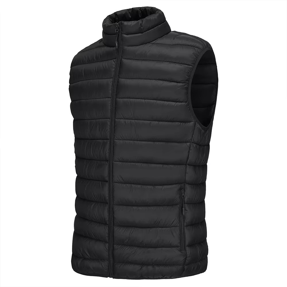 เสื้อกั๊กคอตั้งกันน้ำสำหรับผู้ชายเสื้อแจ็คเก็ตขนเป็ดมีซิปกลางแจ้งอบอุ่นสำหรับเดินเขาวิ่งระบายอากาศแบบไม่มีแขน