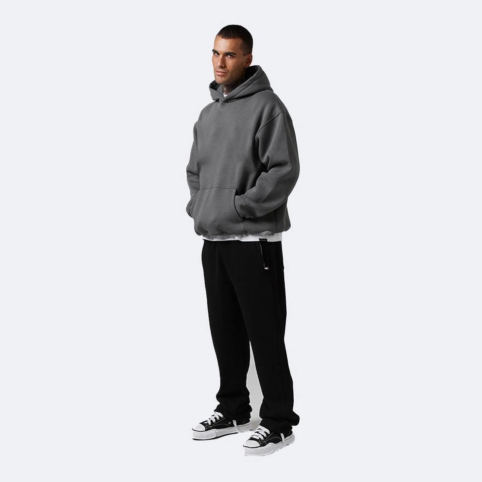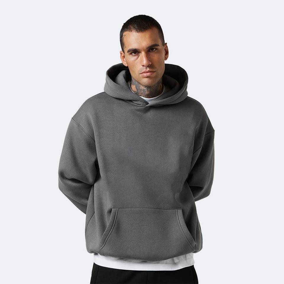 Custom Men's Winter 500gsm Acid Water Washed Fleece Pullover Hoodie 100% Cotton Solid Oversized High Weight Drop Shoulder