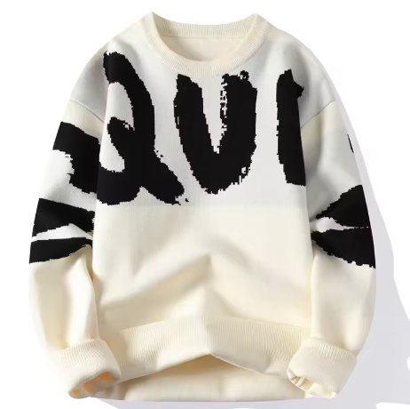 เสื้อสเวตเตอร์คอวีผู้ชายสำหรับฤดูหนาว ผ้าฝ้ายถัก 100% ลายแจ็คการ์ด ระบายอากาศได้ดี ผลิตจากผ้าขนสัตว์ถัก