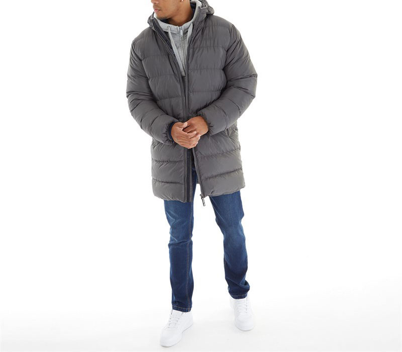 แจ็กเก็ตบุนวมสำหรับผู้ชายเสื้อโค้ทขนเป็ดมีฮู้ดสีดำซิปเต็มตัวสำหรับฤดูหนาวตามสั่ง