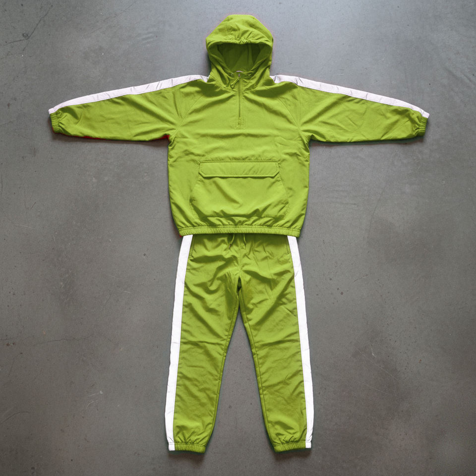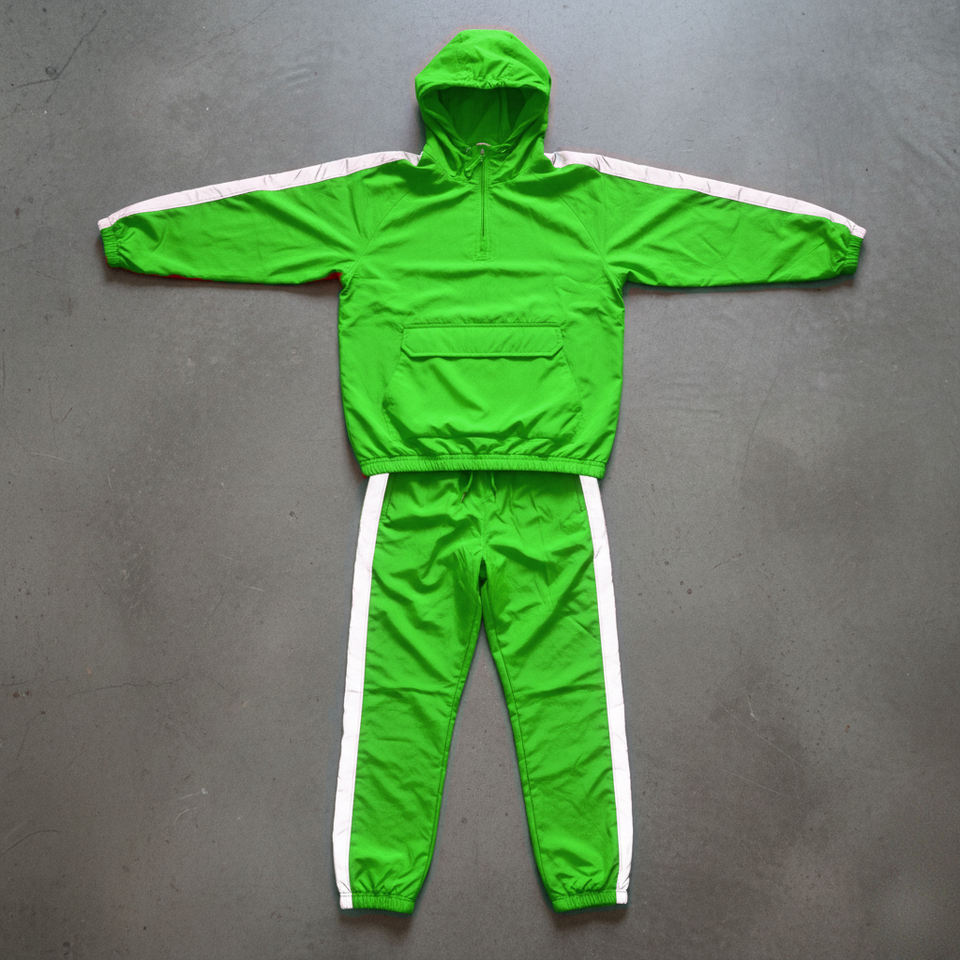ชุดวอร์มกันลมแบบมีฮู้ดสำหรับผู้ชาย 2 ชิ้น ผ้าระบายอากาศ น้ำหนักเบา แถบสะท้อนแสง ซิปแบบรูดขึ้นลง ผ้าไนลอน สไตล์สตรีทแวร์