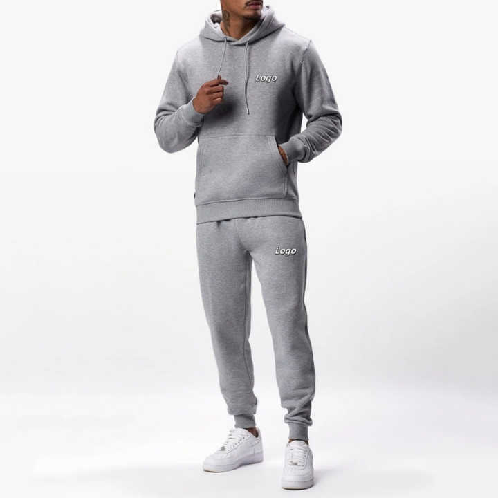 Custom Men's Winter Lightweight 100% Cotton Sweat Suit Drawstring Hood Jogger Pants Solid Eco-Friendly 2-Piece Tracksuits