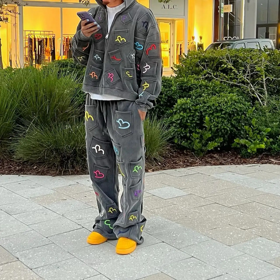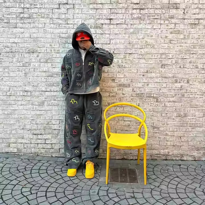 ชุดวอร์มผู้ชายไซส์ใหญ่พิเศษสำหรับฤดูหนาว ผ้าคอตตอน 100% พิมพ์ลาย หนานุ่ม สไตล์สตรีทแวร์ ปักลายวินเทจ ล้างสีแบบแอซิดวอช