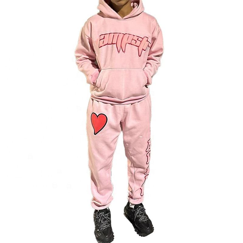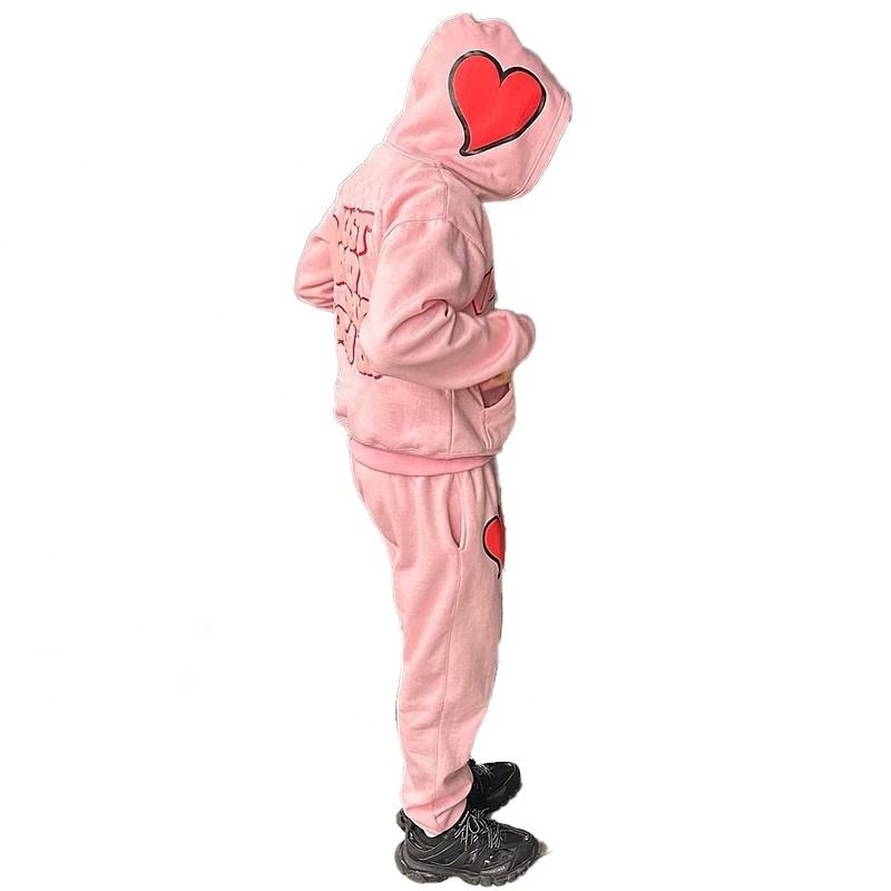 ชุดกางเกงวอร์มขาตรงพิมพ์ลายหัวใจสำหรับวิ่งจ็อกเกอร์พิมพ์ลายหัวใจสำหรับฤดูหนาวของผู้ชาย