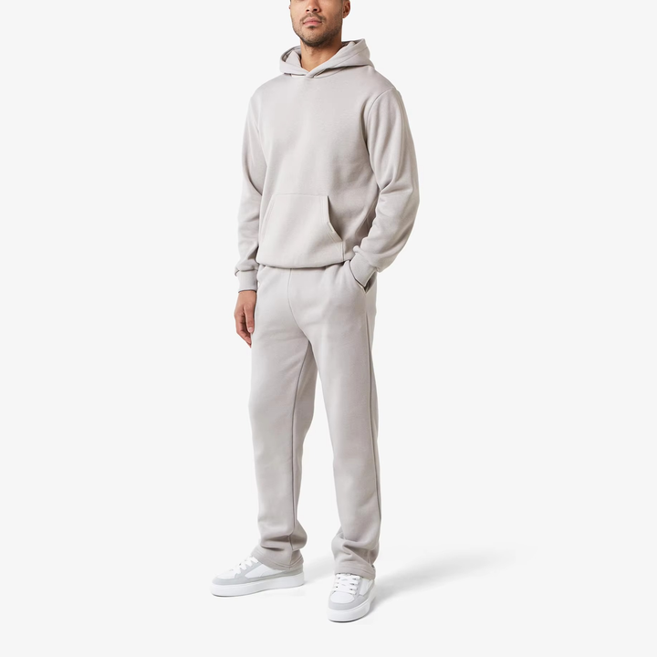 ชุดกีฬาฤดูหนาวผู้ชายแบบกำหนดเอง ชุดวอร์มผ้าฝ้ายฟลีซระบายอากาศ กางเกงขายาวทรงกว้าง เสื้อฮู้ด เสื้อสเวตเตอร์เนื้อหนาสีพื้น