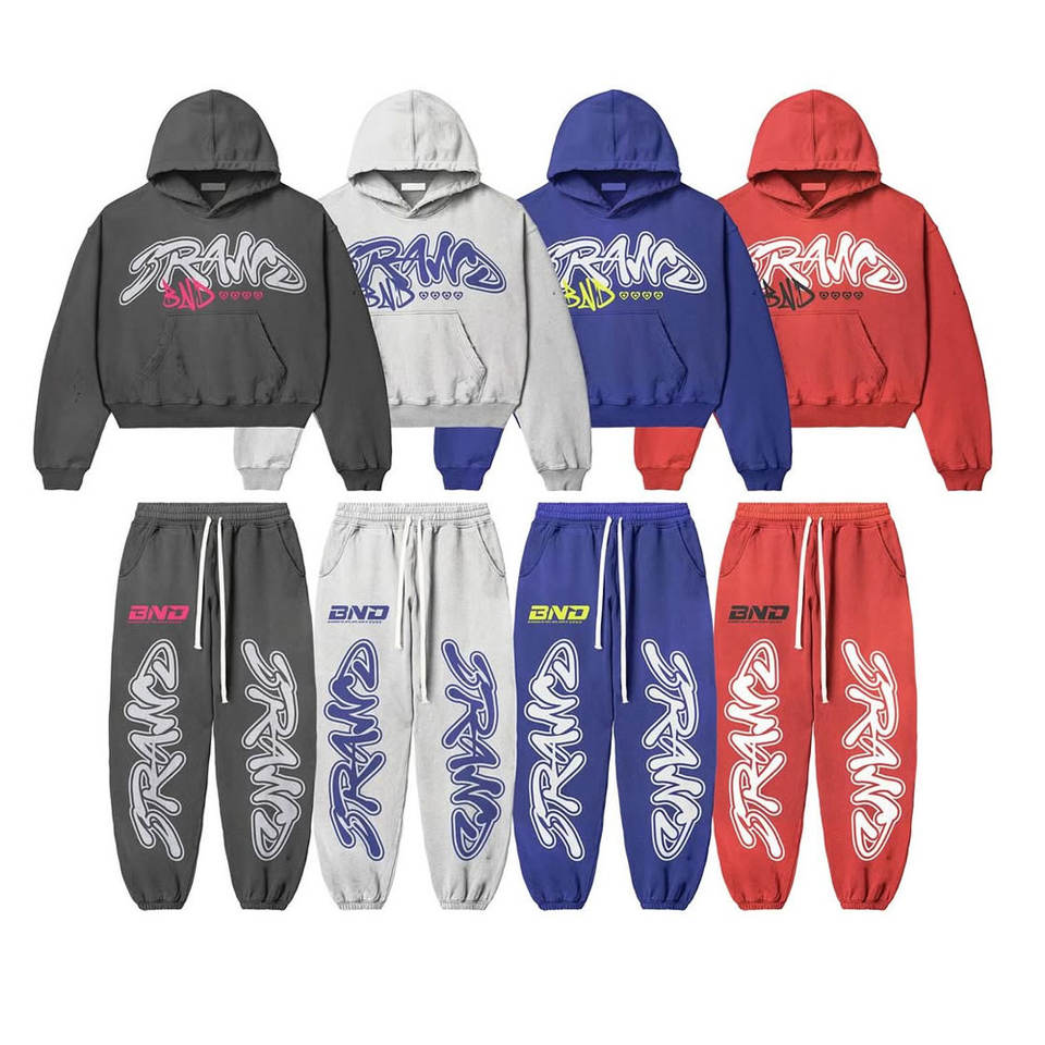 ชุดวอร์มผู้ชายแบบกำหนดเอง 2 ชิ้น ลายพิมพ์ลำลอง แขนยาว ผ้าฝ้าย 100% เสื้อฮู้ดและกางเกงขายาวสำหรับเล่นกีฬา