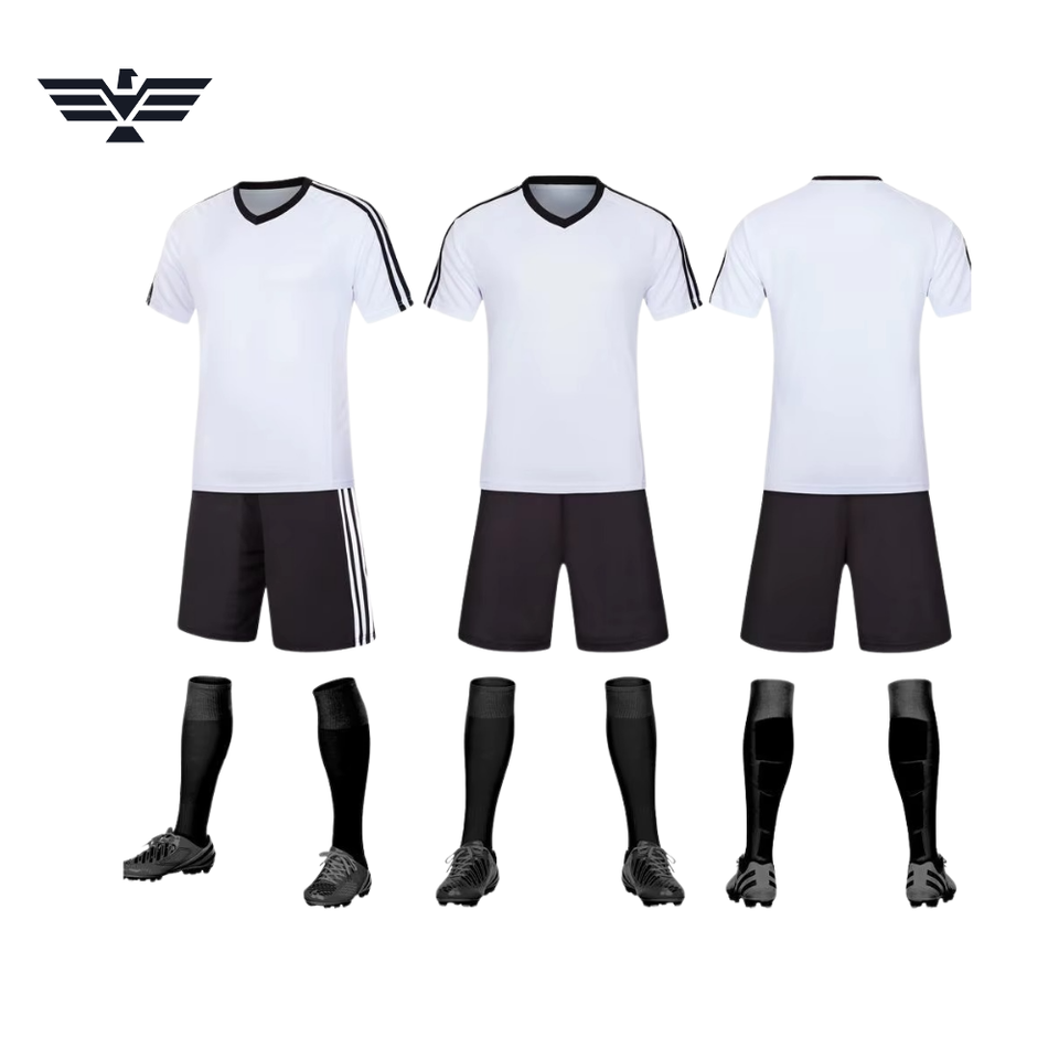 เสื้อฟุตบอลชายหญิงเด็กคุณภาพสูง แห้งเร็ว กางเกงขาสั้นแบบกำหนดเอง วัสดุสั่งทำ สีสั่งทำ โลโก้แบบรีดร้อน
