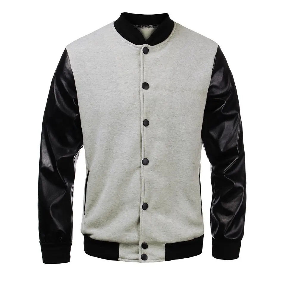 เสื้อแจ็คเก็ตวาร์ซิตี้ผ้าแคนวาสผสมขนสัตว์และหนังสำหรับผู้ชาย ตกแต่งด้วยโลโก้คริสตัลปัก ดีไซน์ระบายอากาศได้ดี สีดำแดง
