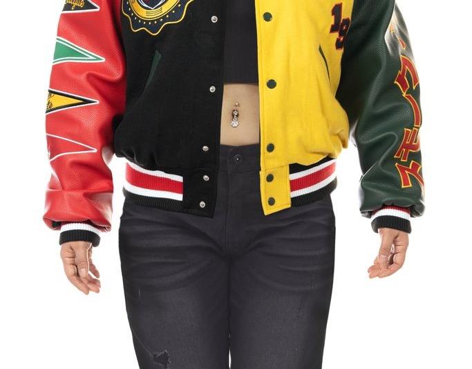 เสื้อแจ็คเก็ตหนังแท้ Letterman ขนสัตว์ผู้ชายแบบกําหนดเองสีดําพร้อมโลโก้ปักสีเหลืองแพทช์และป้ายแจ็คเก็ตสําหรับ m