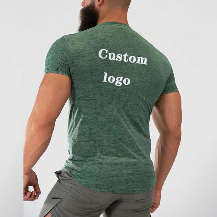 เสื้อออกกำลังกายผ้าแห้งพอดีตัวสำหรับผู้ชายเสื้อออกกำลังกายผ้าคอตตอน95% ไม่มีแท็กเสื้อยืดฟิตเนสพิมพ์ลายว่างเปล่า