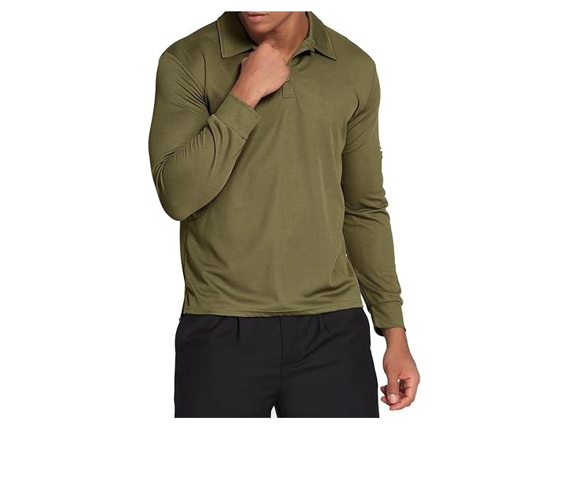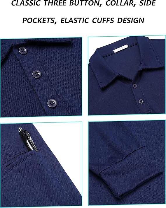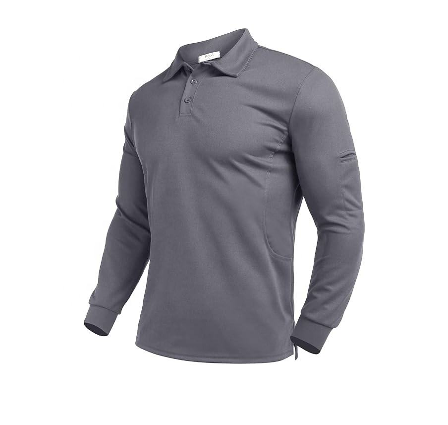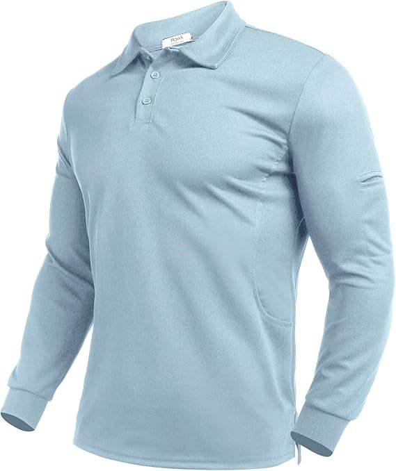 เสื้อเชิ้ตผู้ชายผ้าโพลีเอสเตอร์ทอแขนยาว แห้งเร็ว ป้องกันแสงแดด UPF 50+ ระบายอากาศดี มีปก สไตล์สปอร์ต เหมาะสำหรับเล่นกอล์ฟ สีพื้น