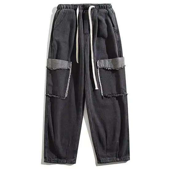 กระดุมผ้าฝ้ายระบายอากาศได้ดีสำหรับผู้ชายกางเกงยีนส์ซักได้100% ขอบหลวมสีฟ้าปานกลางสำหรับทุกฤดูกาลออกแบบได้ตามต้องการ