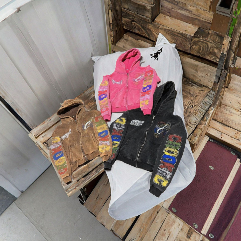 เสื้อฮู้ดผู้ชายแบบซิป สไตล์บ็อกซี่ ผ้าหนา 450 กรัม ทรงโอเวอร์ไซส์ ผ้าหนัก 500 กรัม ลุคทำเก่า ล้างสีแบบแอซิดวอช ผ้าฝ้าย 100% ซับในแบบเรียบ
