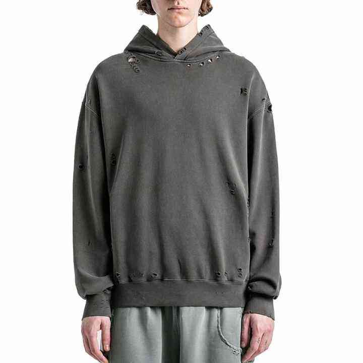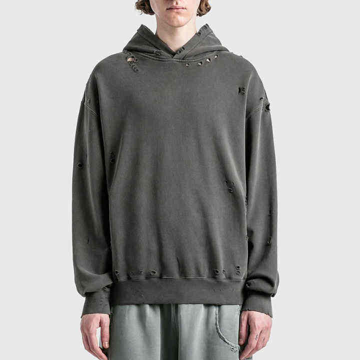 เสื้อมีฮู้ดสวมหัวสำหรับผู้ชายเสื้อฮู้ดผ้าซักกรดมีสีตัดกันปักลายบ็อกซี่สไตล์บ็อกซี่