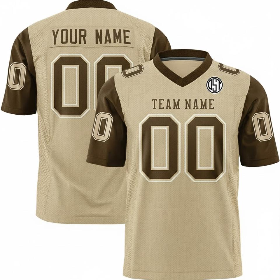 ชุดยูนิฟอร์มอเมริกันฟุตบอลแบบกำหนดเองสำหรับผู้ชาย ผ้าโพลีเอสเตอร์ 250GSM พิมพ์ลายดิจิทัล สำหรับทีมแข่งขันและฝึกซ้อม