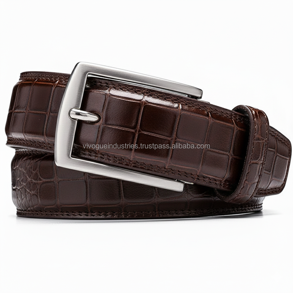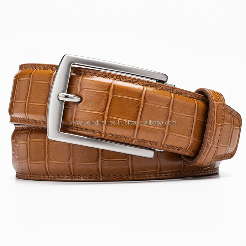 ซัพพลายเออร์ ODM สำหรับเข็มขัดหนังวัวแท้ทรงสี่เหลี่ยมแบบล็อคอัตโนมัติ ทนทาน เหมาะสำหรับใส่กับกางเกงยีนส์หรือชุดลำลอง สีน้ำตาลแทน น้ำตาลเข้ม ดำ หนังกลับ ลายจระเข้