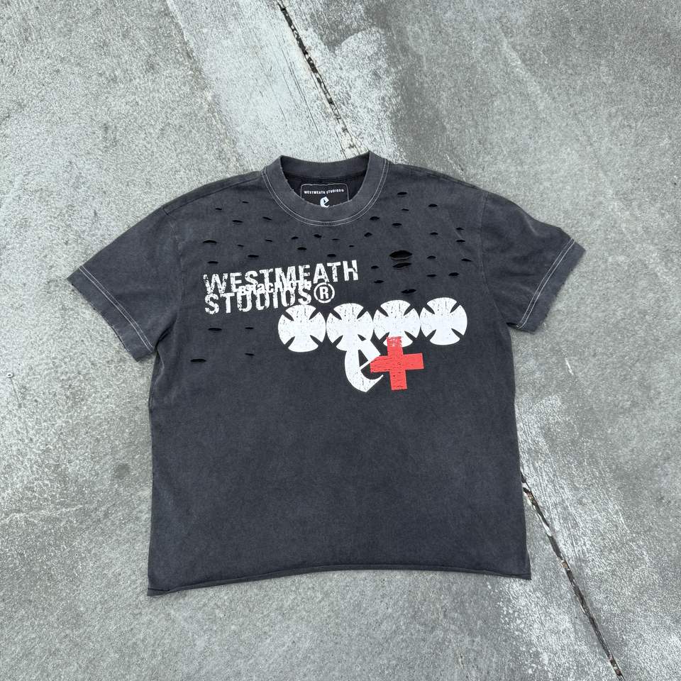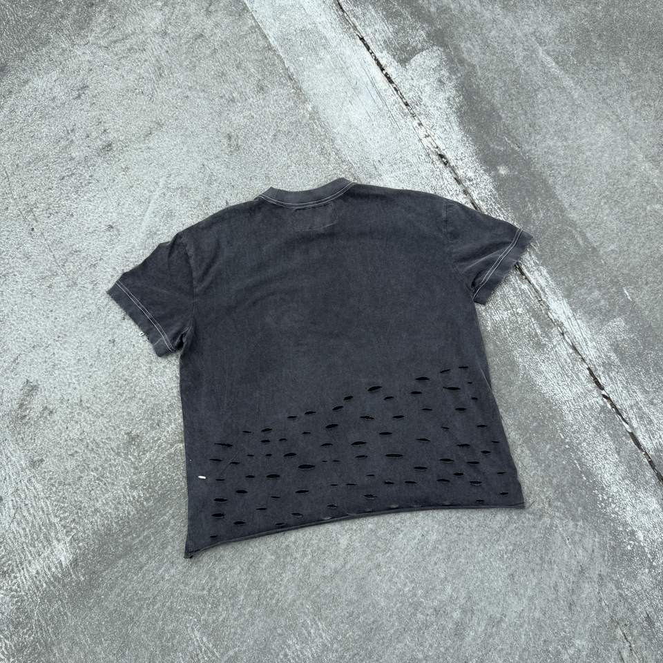 เสื้อยืดวินเทจผู้ชายสไตล์ดิสเทรส ล้างสีแบบสโตนวอช 185 GSM ขอบรุ่ย เสื้อยืดฤดูร้อน