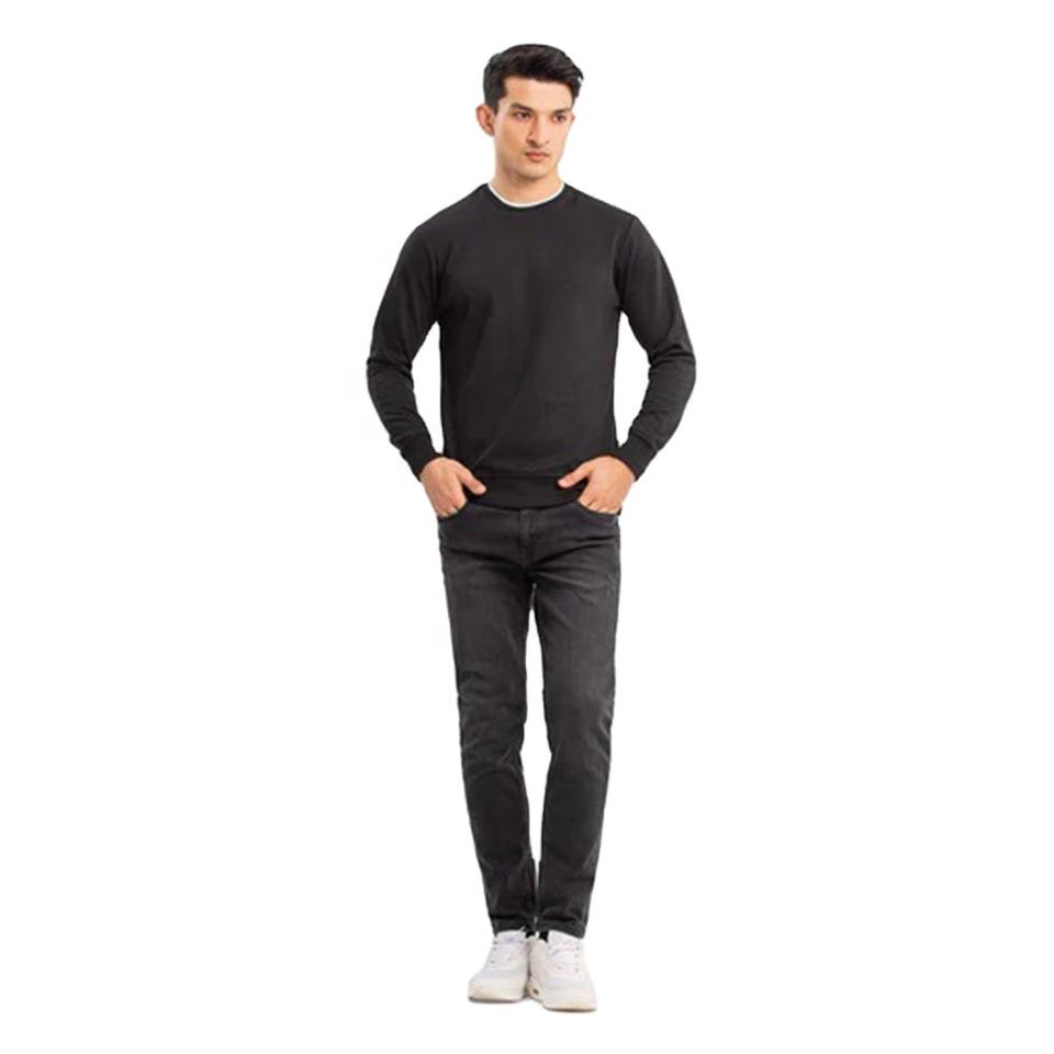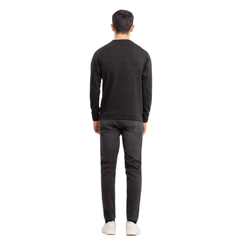 Custom Mens Fashion Sweatshirt Black Regular Fit Streetwear Pullover Top Wholesale New Fleece Fabric Long Sleeve Sweatshirt