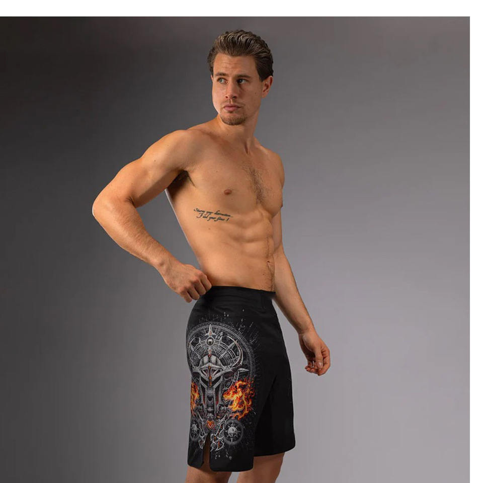 กางเกงออกกำลังกายสีดำสำหรับผู้ชายกางเกงกีฬาศิลปะการต่อสู้แบบกำหนดเอง MMA กางเกงออกกำลังกาย