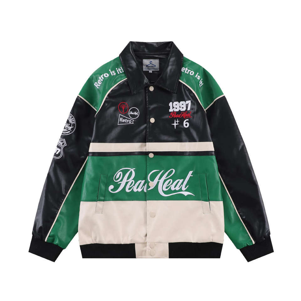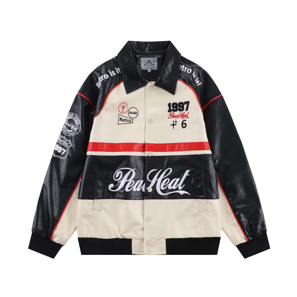แจ็คเก็ตหนังนักแข่งรถนาสคาร์แบบยูนิเซ็กซ์สั่งทำพิเศษ พร้อมโลโก้ด้านหน้า ป้ายกันน้ำ ไซส์ใหญ่พิเศษ
