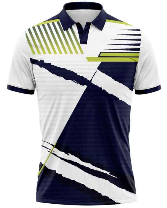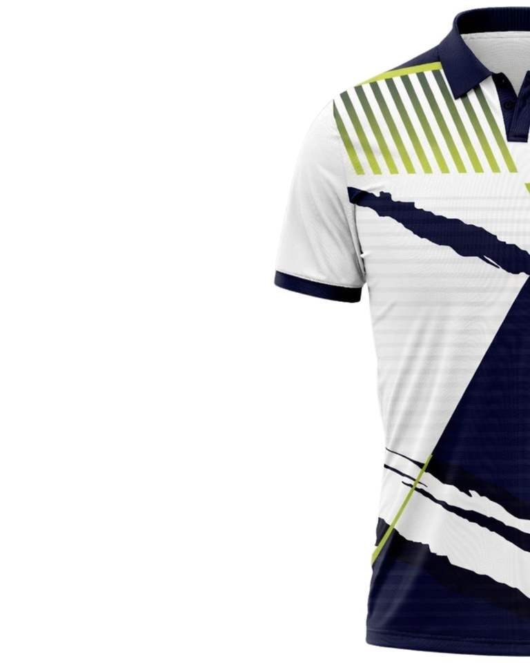 เสื้อโปโลผู้ชายสีน้ำเงินกรมท่าและสีขาว แขนสั้น ลายเรขาคณิต ผ้าโพลีเอสเตอร์ระบายอากาศได้ดี เหมาะสำหรับกีฬากอล์ฟ ลำลอง และฝึกซ้อม