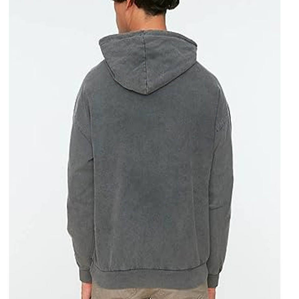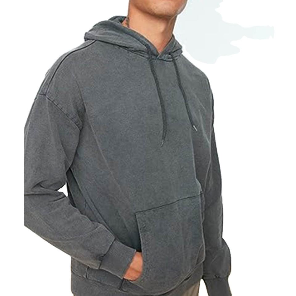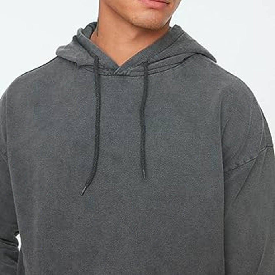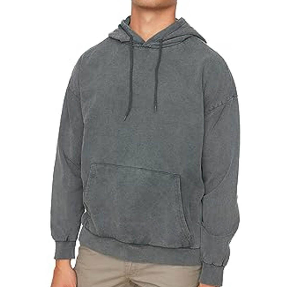 เสื้อฮู้ดดี้ผ้าฝ้ายทรงโอเวอร์ไซส์แบบไม่มีเชือกผูก ปักลาย หนัก ทนทาน ซักย้อมสีแบบแอซิดวอช