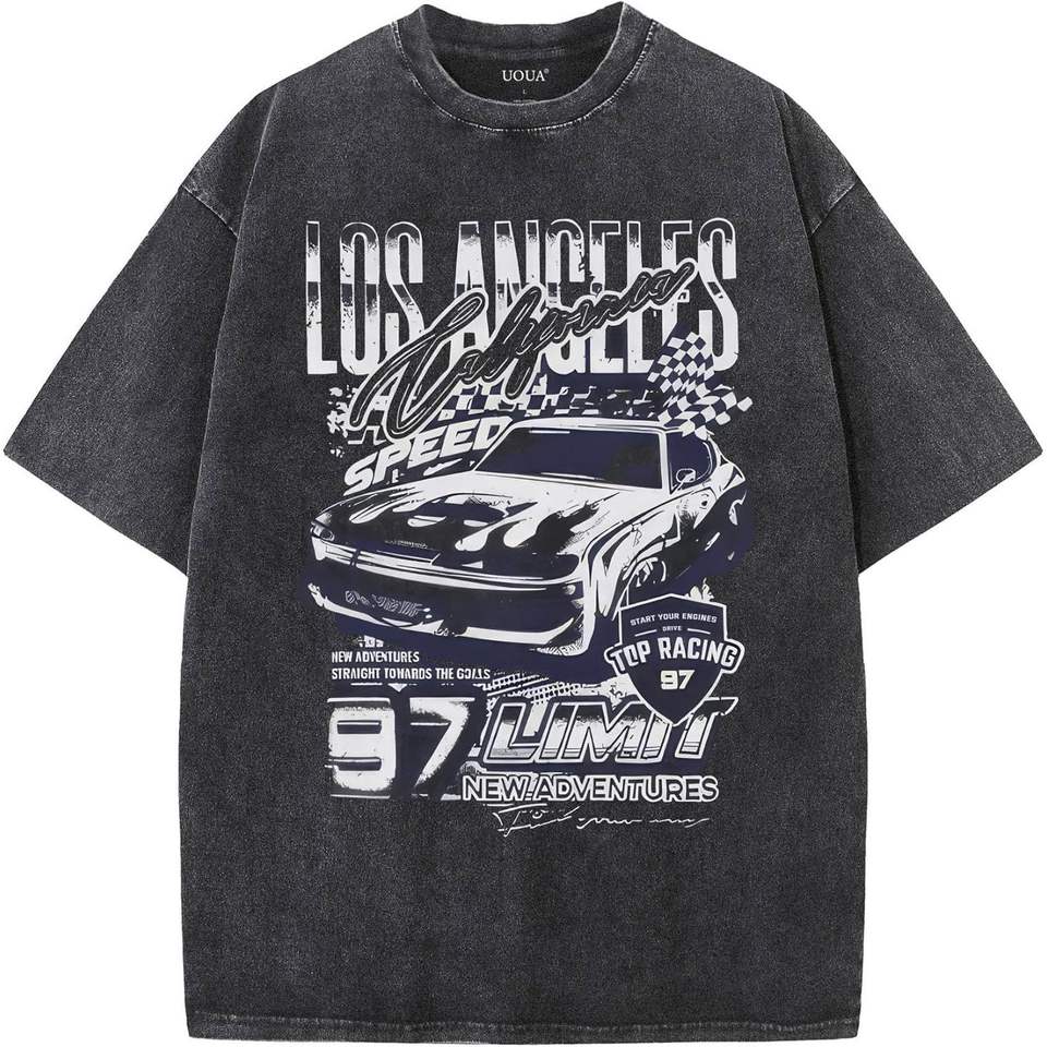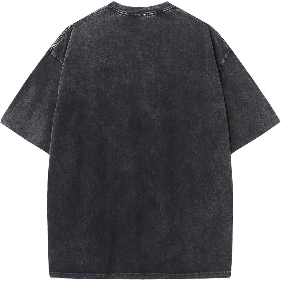 เสื้อยืดโอเวอร์ไซส์ผู้ชาย ผ้าคอตตอนฟอกสี แขนสั้น สไตล์ลำลอง สตรีทแวร์ ระบายอากาศได้ดี (S-2XL)