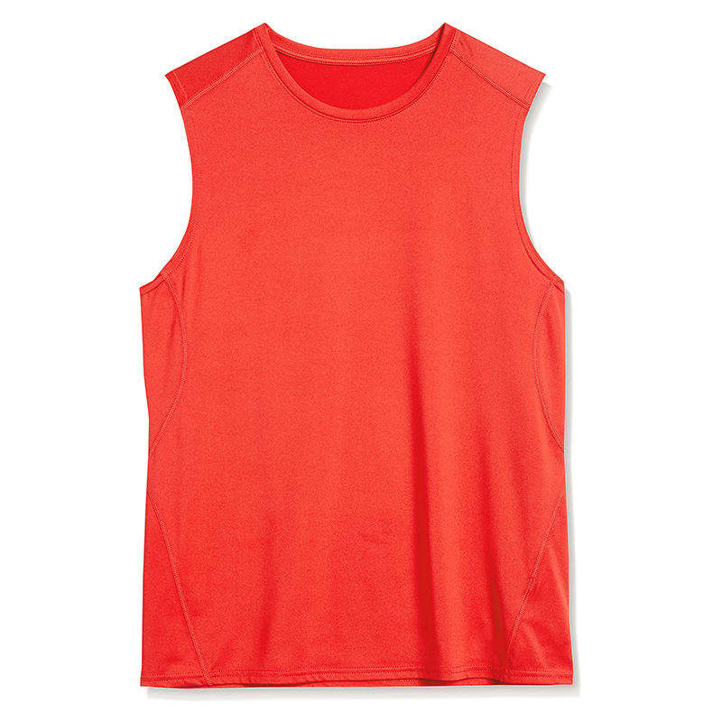 เสื้อกล้ามออกกำลังกายผู้ชายสีพื้น แห้งเร็ว ผ้าถัก ทรงฟิตเนส ไซส์ใหญ่ พร้อมโลโก้