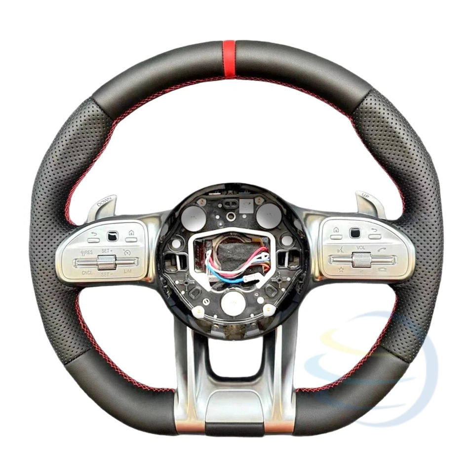 พวงมาลัยหุ้มหนังเย็บด้วยมือ Mercedes Mercedes Benz Cla AMG สำหรับ G63 W204 W205 W211 W212 W222 W213 W218 C300 C43