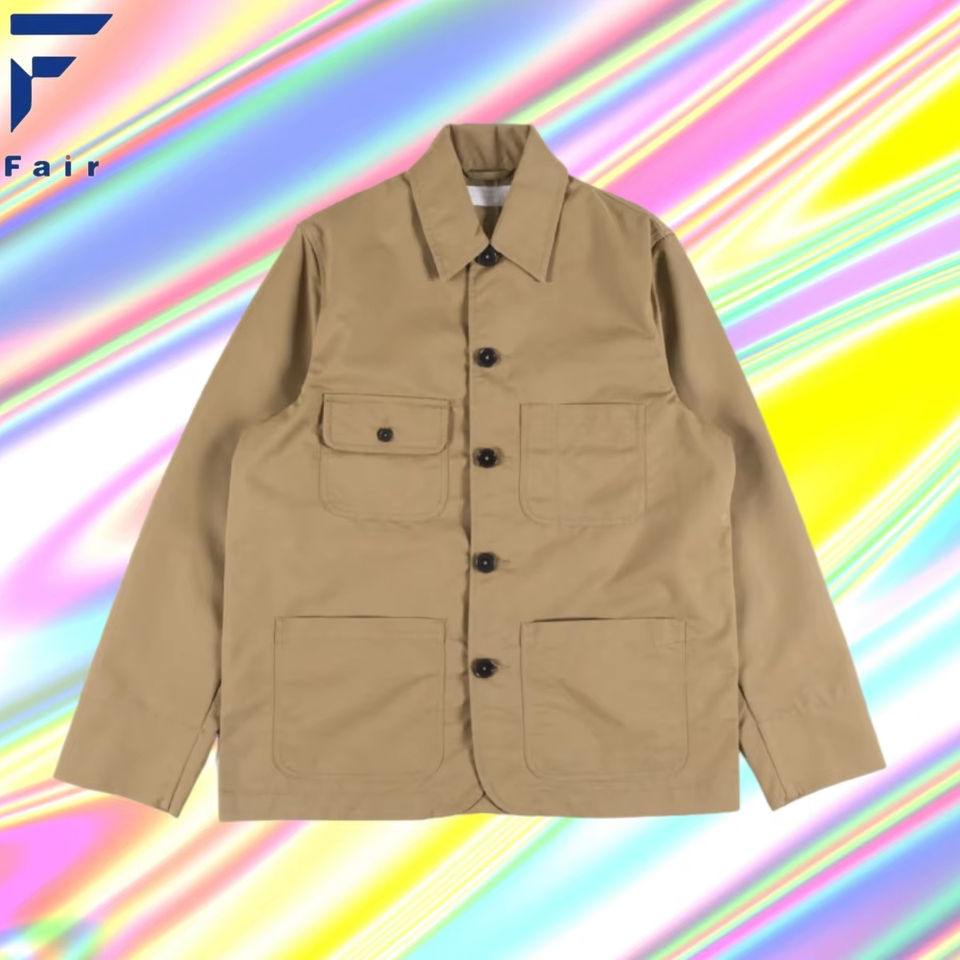 แจ็คเก็ตร้านค้าแบบกำหนดเองทรงหลวมสำหรับลุคลำลองมากขึ้นหน้าห้าปุ่มปัดโพลีเทคแบบคลาสสิก