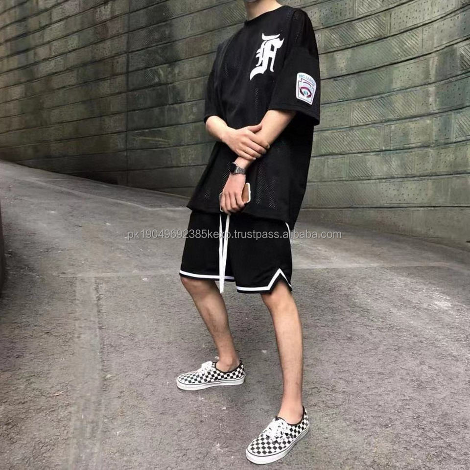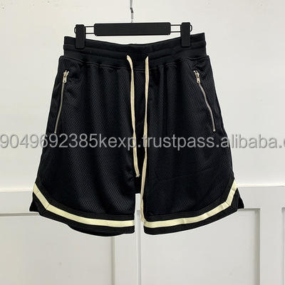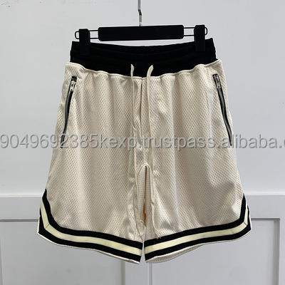 กางเกงขาสั้นตาข่ายสองชั้นสำหรับผู้ชายเอวยางยืดทรงหลวมมีกระเป๋าบาสเก็ตบอลเล่นฟิตเนส