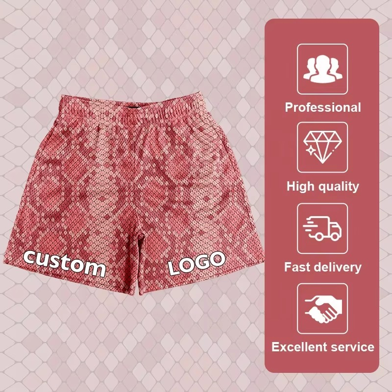 กางเกงขาสั้นตาข่าย5นิ้วสำหรับผู้ชายกางเกงขาสั้นตาข่ายระบายเหงื่อพิมพ์ลายงูสำหรับผู้ชาย