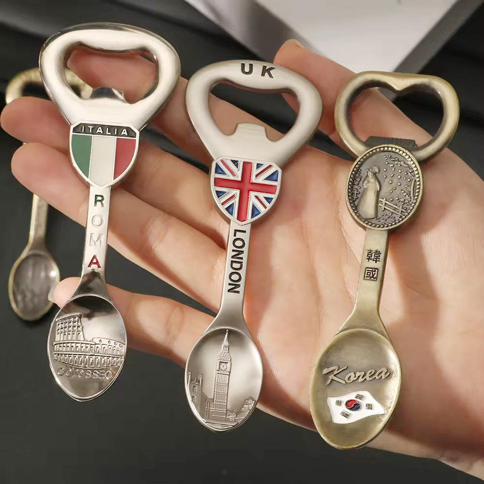 ที่เปิดขวดโลหะแม่เหล็กติดตู้เย็นรูปช้อนพร้อมแม่เหล็กติดตู้เย็นของที่ระลึกของประเทศลอนดอนแม่เหล็กติดตู้เย็น