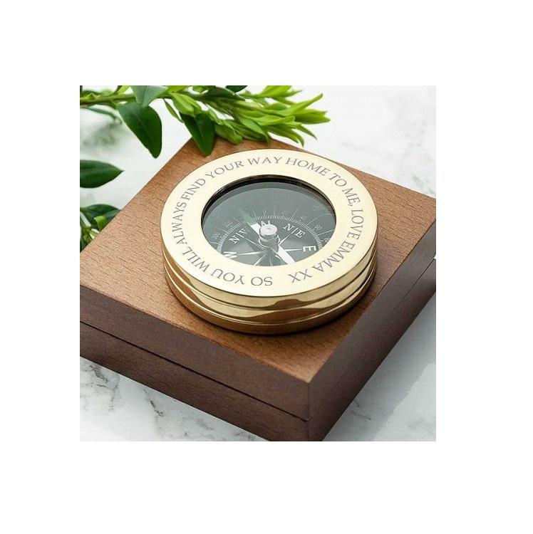 เข็มทิศโลหะแบบกำหนดเองพร้อมเคสไม้เนื้อแข็งอุปกรณ์แกดเจ็ตเดินเรือทองเหลืองทิศทางการเดินเรือที่ดีที่สุดของขวัญที่กำหนดเอง