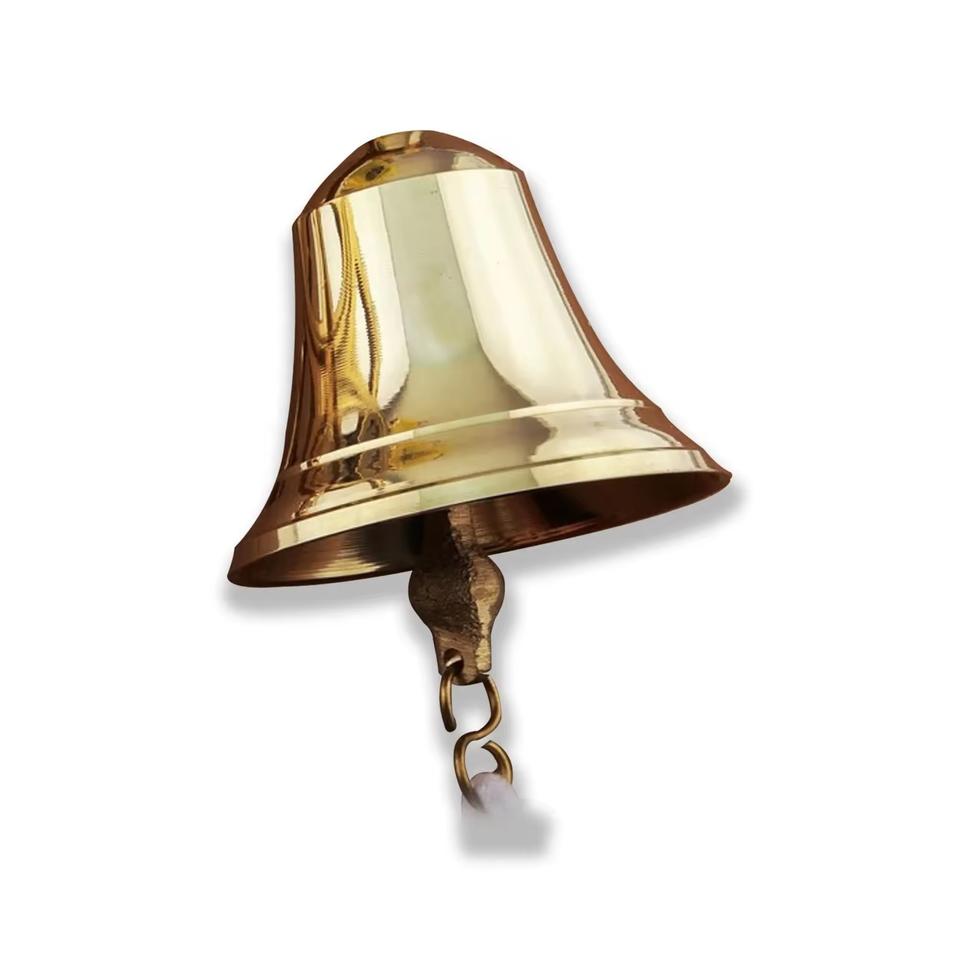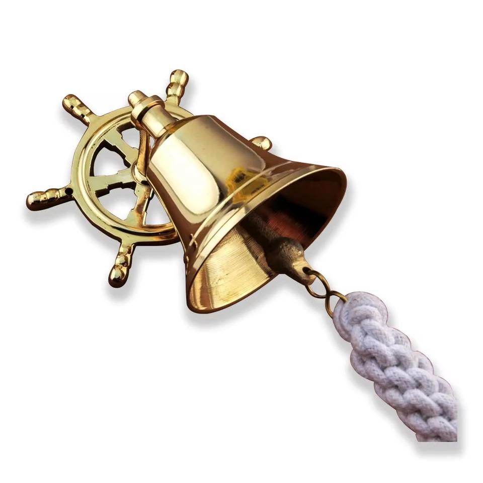 กระดิ่งโลหะสั่งทำพิเศษ รูปพวงมาลัยเรือ กระดิ่งตกแต่งผนังสไตล์ทะเล ทำจากทองเหลือง พิมพ์ลาย UV พร้อมเชือกเคลือบ 8 ชิ้น