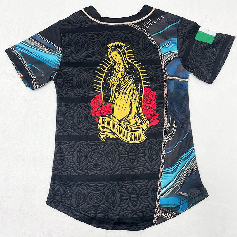 เสื้อเจอร์ซีย์เม็กซิโกแบบกำหนดเอง พระแม่มารี พระแม่แห่งกัวดาลูป ซาน จูดาส ทาเดโอ พระเยซูเม็กซิกัน เสื้อซอฟต์บอล เบสบอล