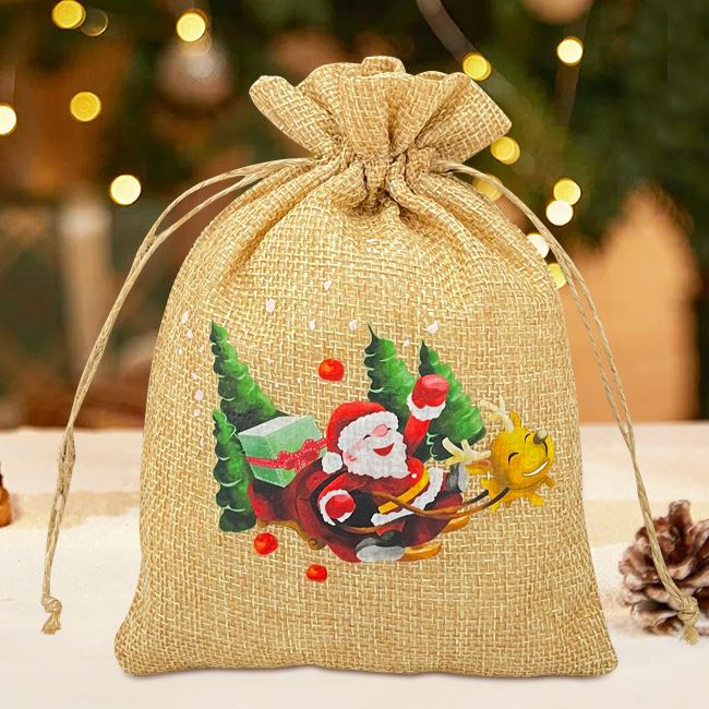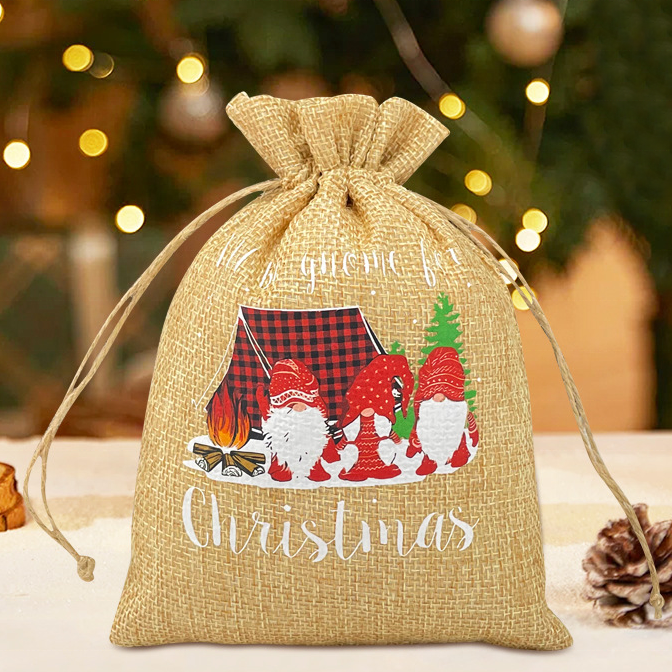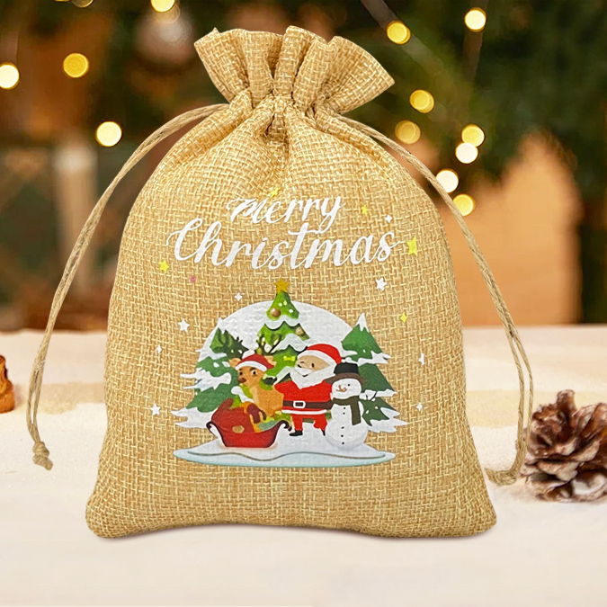 ถุงผ้าลินินอินทรีย์แบบผูกเชือกขนาดเล็กพร้อมโลโก้พิมพ์ลายสีผสมสำหรับเป็นของขวัญลูกกวาด
