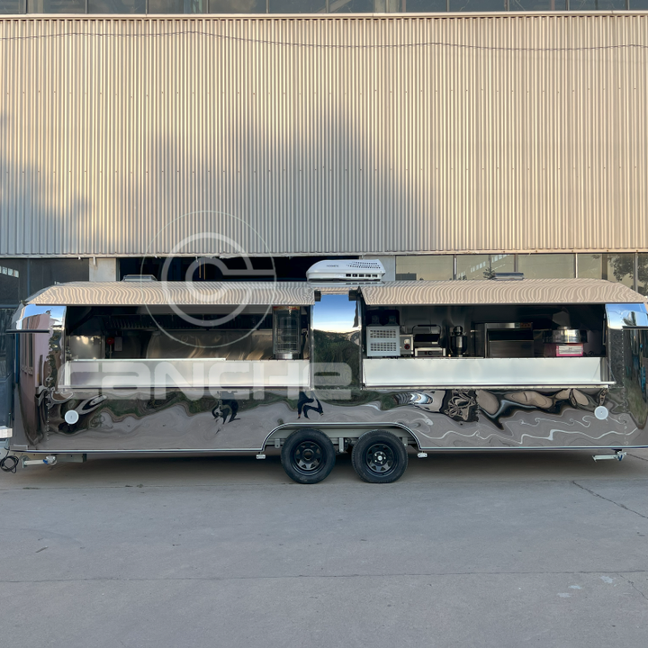 รถขายอาหารเคลื่อนที่แบบกำหนดเอง รถบรรทุกขายอาหารเร็ว รถพ่วงขายกาแฟ ไอศกรีม รถขายอาหารพร้อมโครงสร้างสองแกน