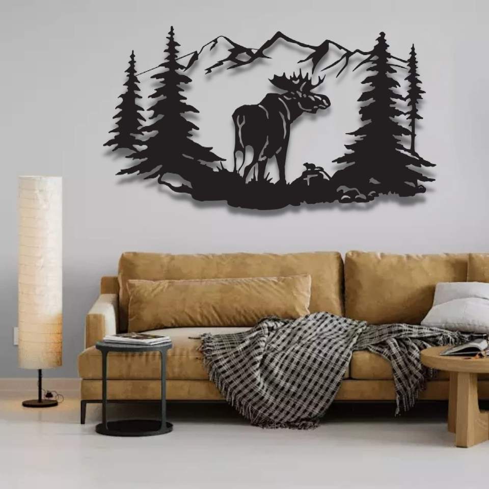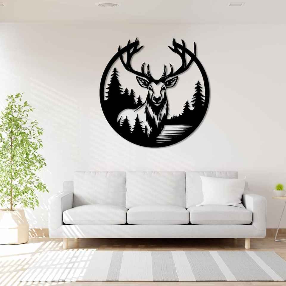 งานฝีมือโลหะอาร์ตเดโคสมัยใหม่ลายกวางเรนเดียร์แบบนามธรรม ตัดด้วยเลเซอร์ สำหรับแขวนผนัง ส่งตรงจากอินเดีย
