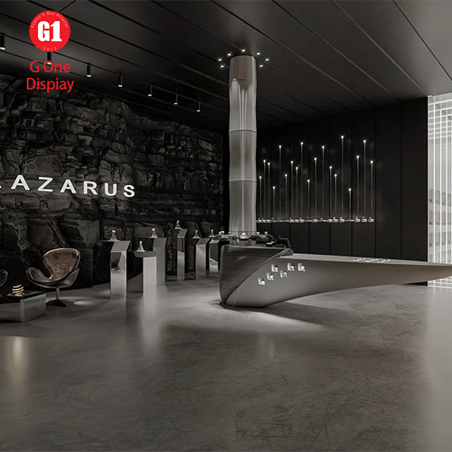 ชั้นวางหนังสือสมัยใหม่แบบกำหนดเอง ชั้นวางโชว์หนังสือที่ทนทาน ตู้โชว์หนังสือขนาดใหญ่พร้อมไฟ LED สำหรับการออกแบบเฟอร์นิเจอร์ร้านหนังสือ