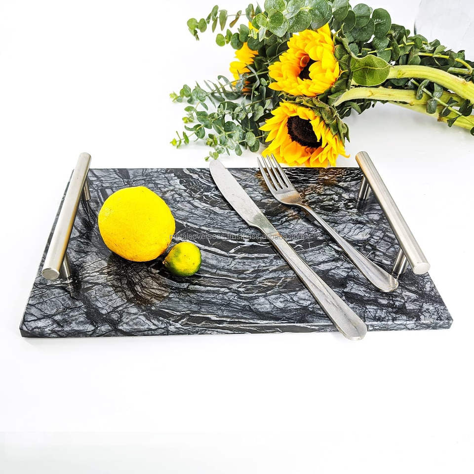 ถาดเสิร์ฟอาหารโลหะกันลื่นแบบโมเดิร์นชามหินอ่อนหินธรรมชาติสำหรับทำขนมอาหารแห้งและผลไม้ของตกแต่งห้องครัวในบ้าน