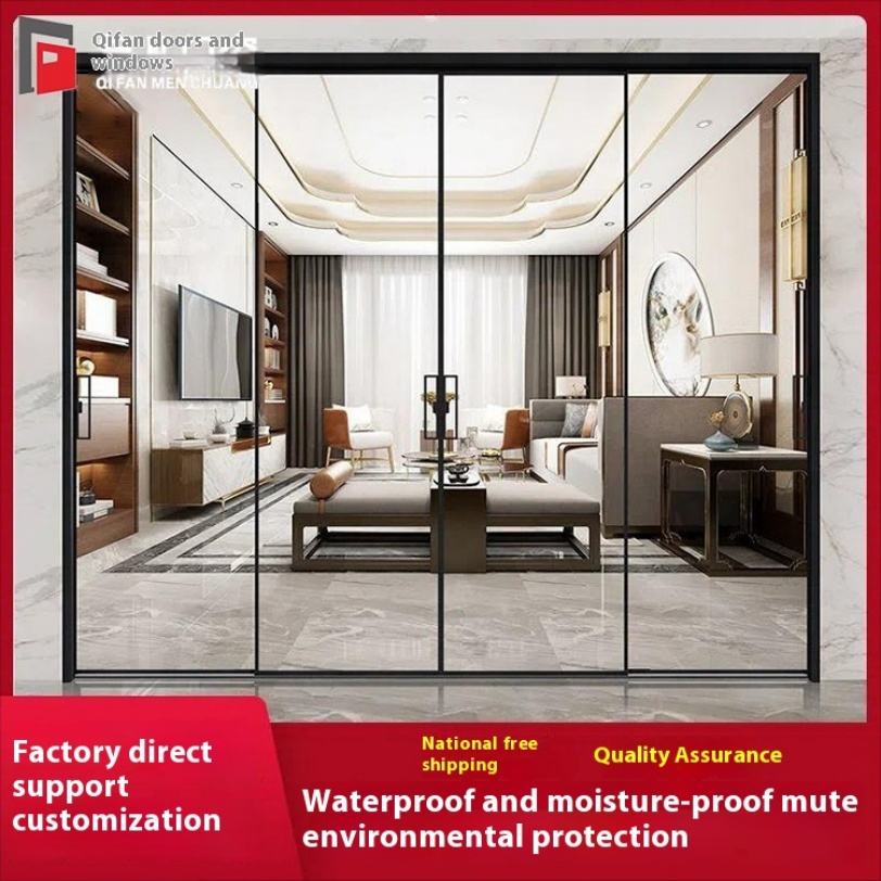 ประตูบานเลื่อนกระจกสามบาน ดีไซน์ทันสมัย ผลิตจากอลูมิเนียมอัลลอยด์ กรอบแคบมาก กันน้ำ เหมาะสำหรับใช้ภายในห้องครัวและห้องนั่งเล่น