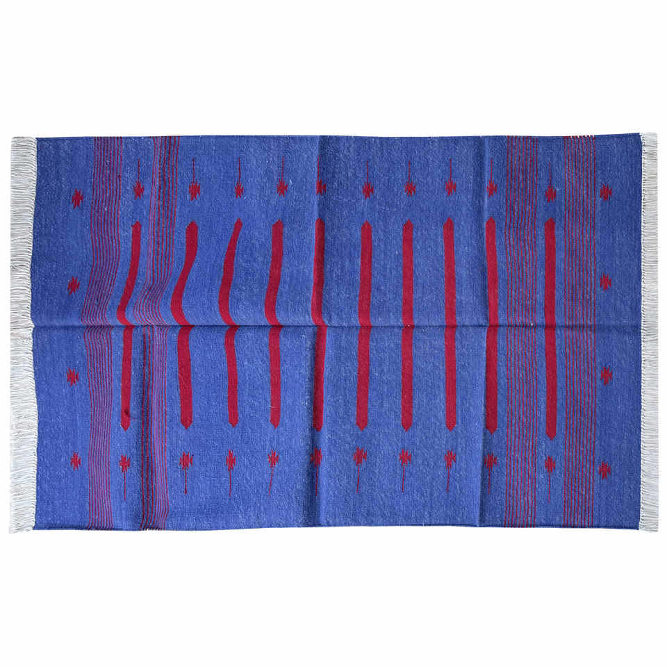 พรมปูพื้นสานแบบเรียบทันสมัยงานแฮนด์เมดลายผักย้อมสีฟ้าและแดงจากผู้จำหน่ายในอินเดีย